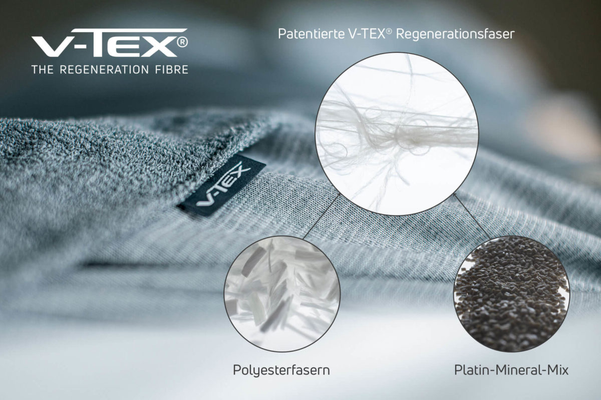 Unser Tipp: Kombiniere gezielte Ernährung mit unseren regenerationsfördernden Produkten auf Basis der V-TEX® Regenerationsfaser – für maximale Wirkung von innen und außen.
